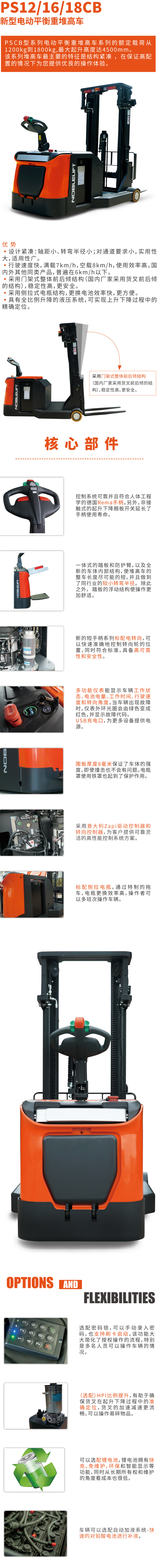 産品賣點 設計緊湊:軸距小、轉彎半徑小;對通道要求小,實用性大,适用性廣 行駛速度快,滿載7km/h,空載8km/s,使用效率高 采用門架式整體前後傾結構,穩定性高,更安全 采用側拉式電瓶結構,更換電池效率快,更方便 具有全比例升降的液壓👋系統,可實👺現上升下降過程中的定位