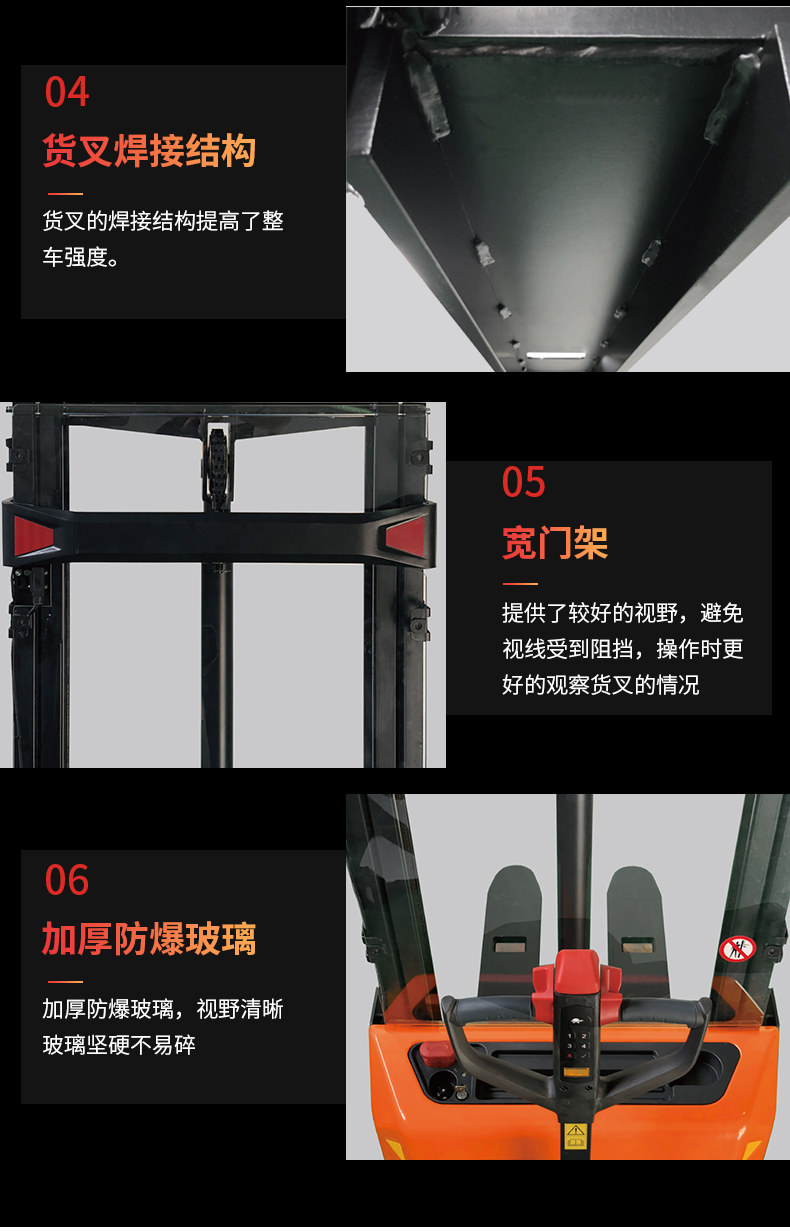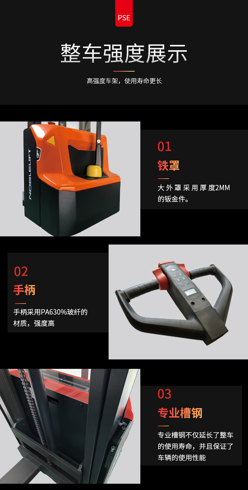 産品賣點 适用于小噸位物料堆高搬運 中層樓高應✋用場😺所的理想選擇 内置充電器确保使用的高自主性 緊湊&自重小 12B:免維👩🏿❤️💋👨🏽護鉛酸電池/12N:快充锂電池 多功能手柄,可操作性強
