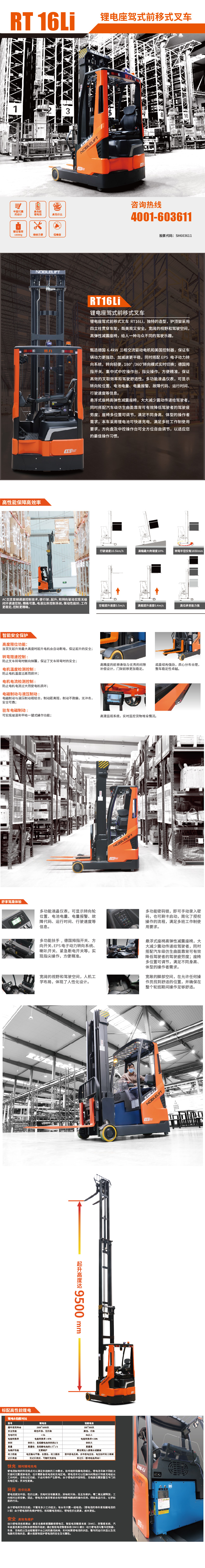 産品賣點 貨叉傾斜有效提升高位承載能力。 電液比例控制系統,微動性能好,更穩定。 高位限速功能,高位作業的安全性。 高度限位功能,大高度電機自動斷電,起升安全。 轉彎限速控制,防止💁🏼♀️轉向側向傾覆,轉向安全。 前後移末端減速,門架移動👌的穩定性。 電機溫度監😝測控制,防止溫度過高而損壞。