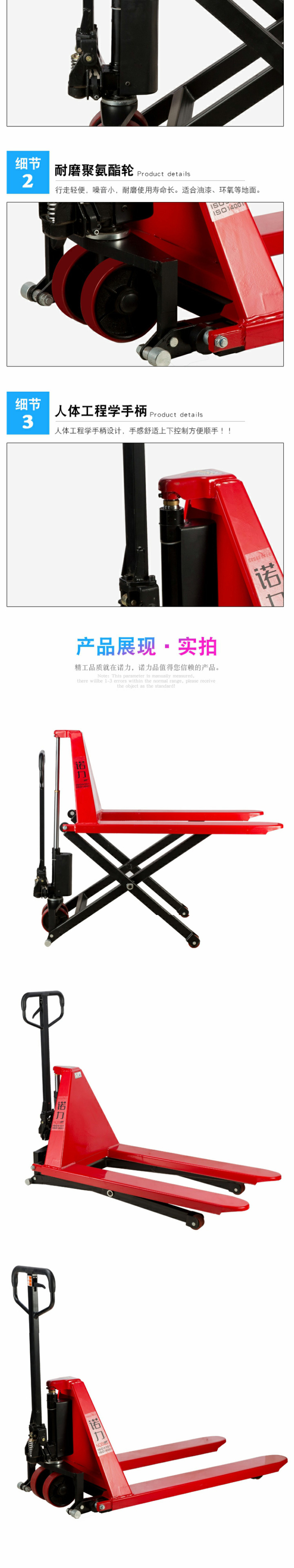 一、手動液(yè)壓油桶搬(bān)運車的特(te)點: 起升高(gao)度比較小(xiǎo),一般爲110-120毫(háo)米。 貨物在(zai)起升過程(cheng)中基本上(shang)保持水平(ping)。