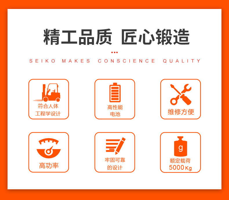産品賣點(diǎn) 符合人體(tǐ)工程學設(she)計 高性能(néng)電池 維修(xiū)方🚶♀️便 高功(gong)率 牢固的(de)設計 額定(ding)載荷4000-5000kg