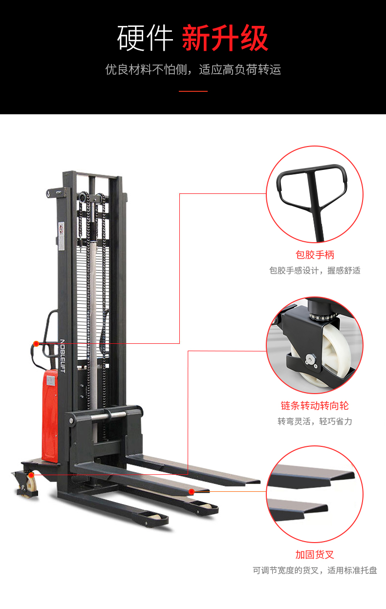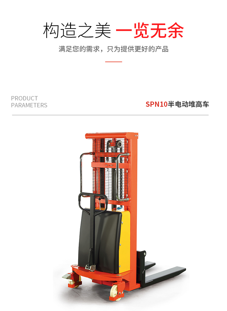 SPN系列(liè)半動堆(dui)高車式(shi)段距離(li)搬運不(bú)行車輛(liang),郵箱載(zǎi)荷可達(da)1000kg/1500kg,提升高(gāo)度大可(ke)達3500mm。特别(bie)适合在(zài)位☁️置收(shou)到限👌制(zhì)的使用(yòng)🌈場合,尤(yóu)其在窄(zhǎi)巷道中(zhōng)表現更(geng)爲大功(gōng)率的泵(bèng)站電機(jī)縮短了(le)起升時(shí)間,提升(sheng)了工作(zuò)效率效(xiao)率的直(zhi)流驅動(dong)物流的(de),快捷