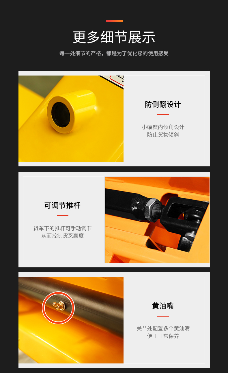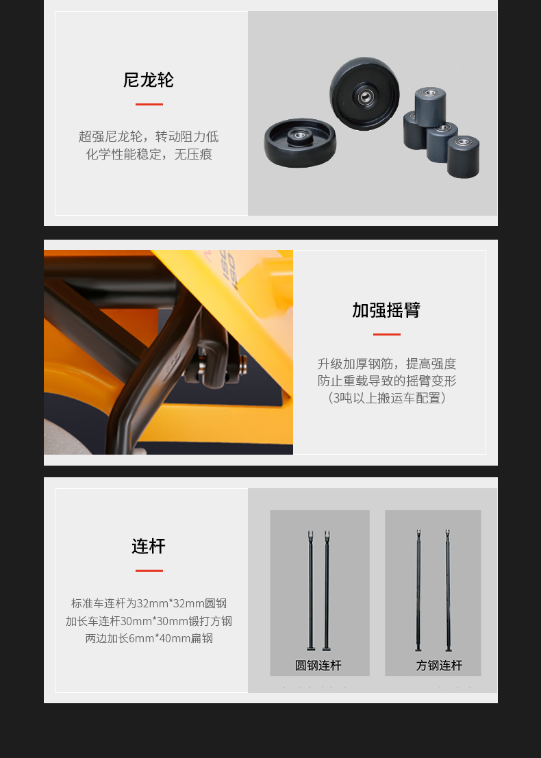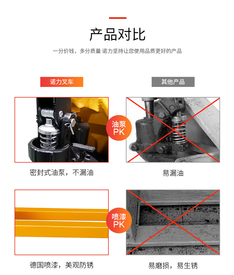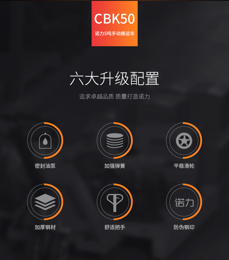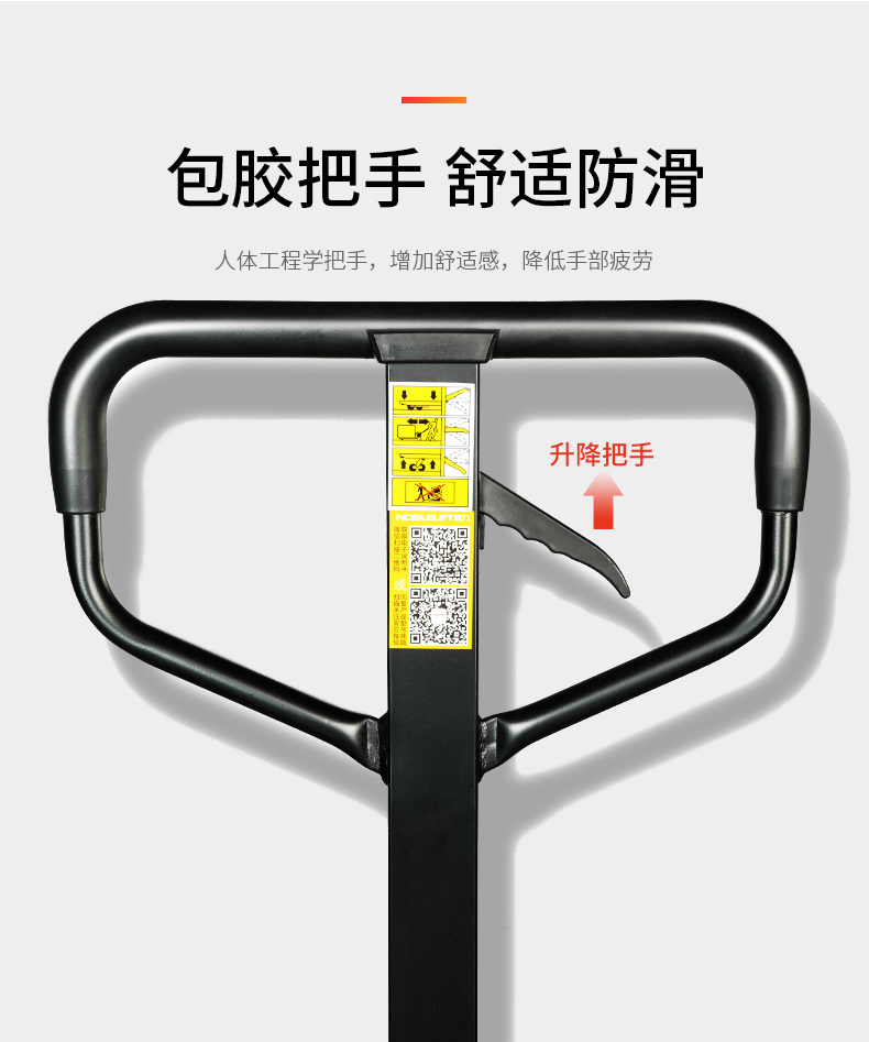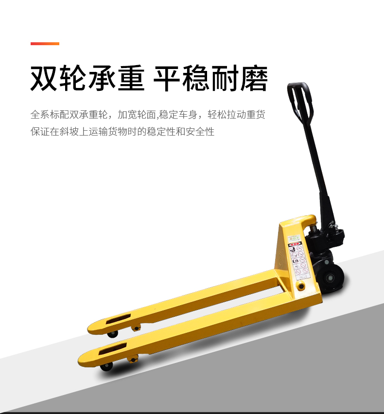 産(chǎn)品賣點 設計出衆(zhong),品質的搬運車 是(shi)各種超市、倉🔆庫和(he)工🧡廠段距離手動(dòng)搬運貨物的理想(xiang)選擇材料選用加(jiā)強型剛才,堅固耐(nai)用,外形精緻美觀(guān);德國标準WAGNER噴塗系(xì)統确保噴塗質量(liang)所有的轉向軸處(chu)都加以潤滑,确保(bao)良好的操作性和(hé)輕松的轉向;複合(hé)套和鍍鉻軸确保(bao)了安靜平穩的起(qǐ)升和行走,延長使(shǐ)用壽命
